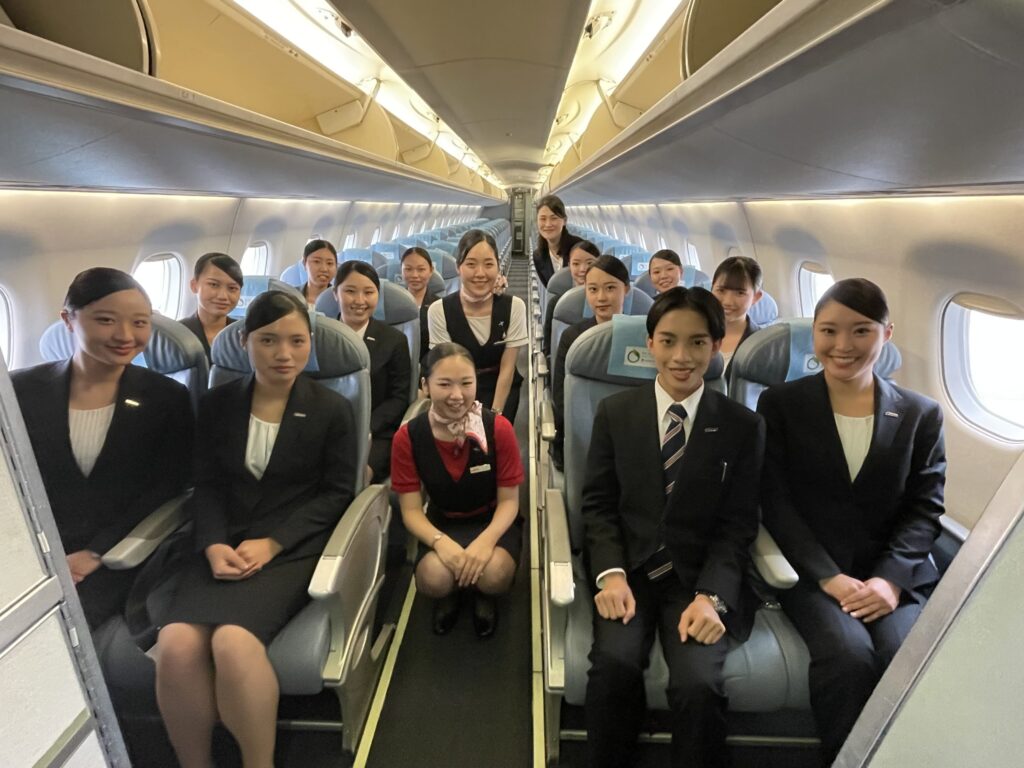 エアラインコースでは、実際に航空機に搭乗し、機上での一連の流れを間近で拝見することで、座学で学んできた客室乗務員の仕事をより深く理解することができました。