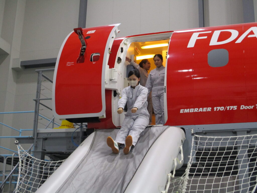 ●株式会社フジドリームエアラインズ(FDA)様訓練施設にて、航空機緊急時脱出訓練