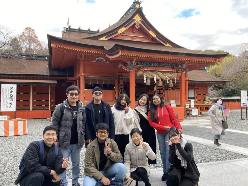 名鉄観光サービス株式会社様による職業実践専門課程の授業の一環で、学生たちがこの研修の企画・事前説明・添乗業務などを行いました。国際交流科の留学生にとっては、静岡県の歴史や日本文化への理解を深めながら、学科を越えて交流を深める良い機会となりました。