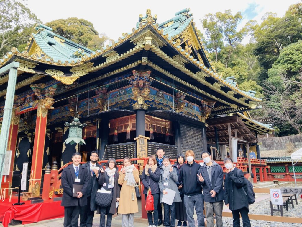 お客様役として父母等をお招きした本ツアーでは、日本の貴重な国宝建造物である久能山東照宮や、新国立競技場の設計を担当した「隈研吾建築都市設計事務所」が手掛けた日本平夢テラスなど、地元静岡市の魅力あふれる観光スポットをバスで巡りました。学生たちは本番さながらの環境の中、ツアーコンダクターとして出発から帰着まで、それぞれの担当箇所において緊張感を持ちながら、責任をもって説明・誘導することができました。
