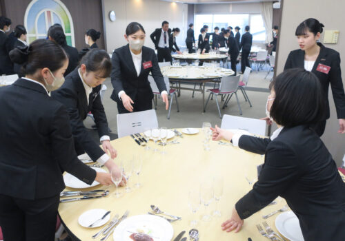 <ホテル・ブライダルコース>1年生「料飲・宴会サービス」の授業を体験!